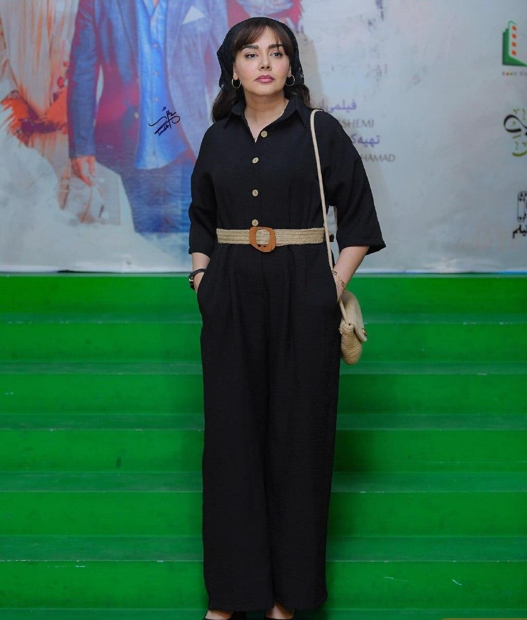 استایل شیک “شیرین سریال نون خ” با کیف و کمربند کنفی در حاشیه اکران فیلم !