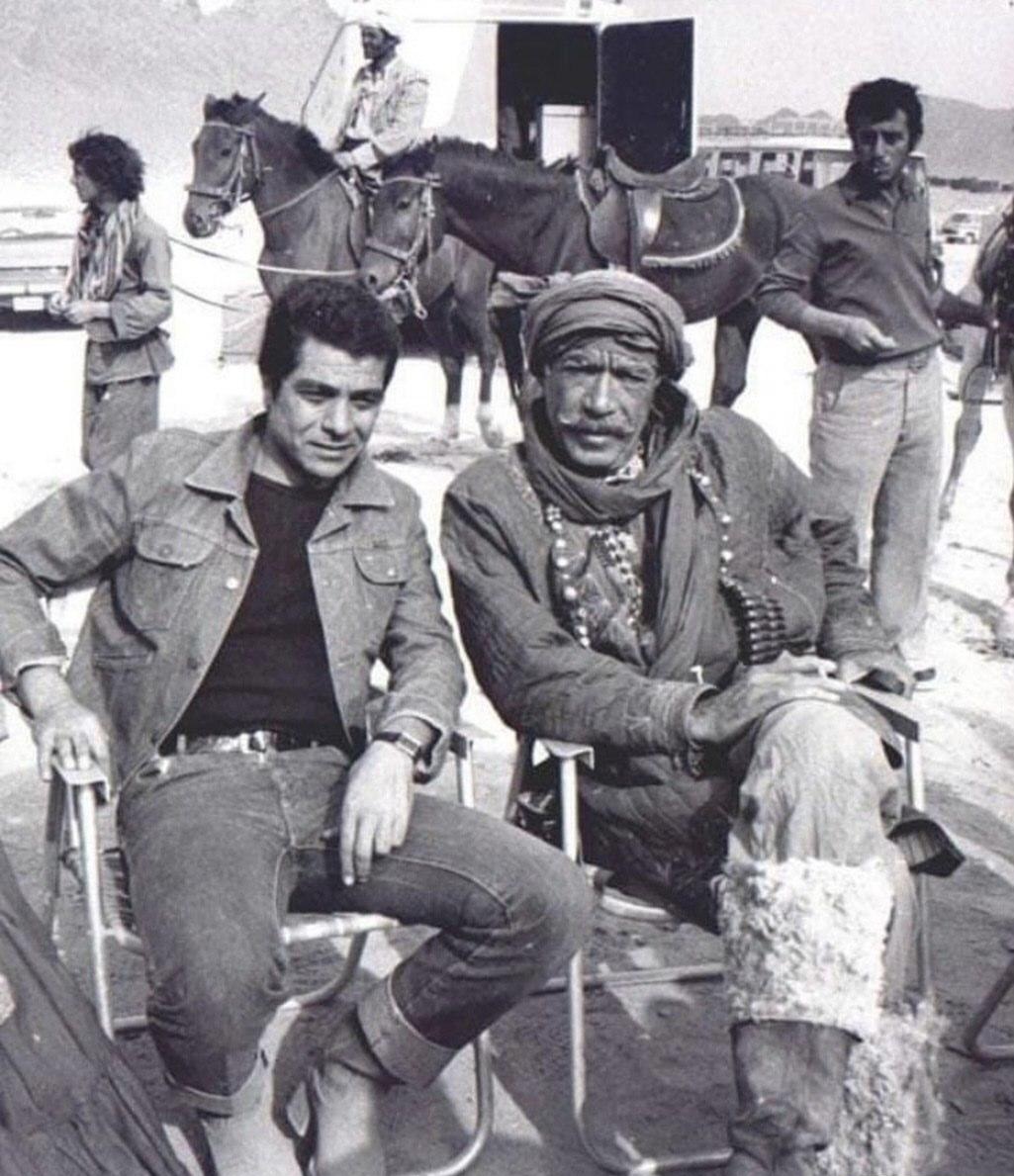 عکس بهروز وثوقی و محمدعلی کشاورز با آنتونی کوئین در فیلم سینمایی کاروانها ۱۳۵۶ + خاطره جالب بهروز وثوقی از فیلم